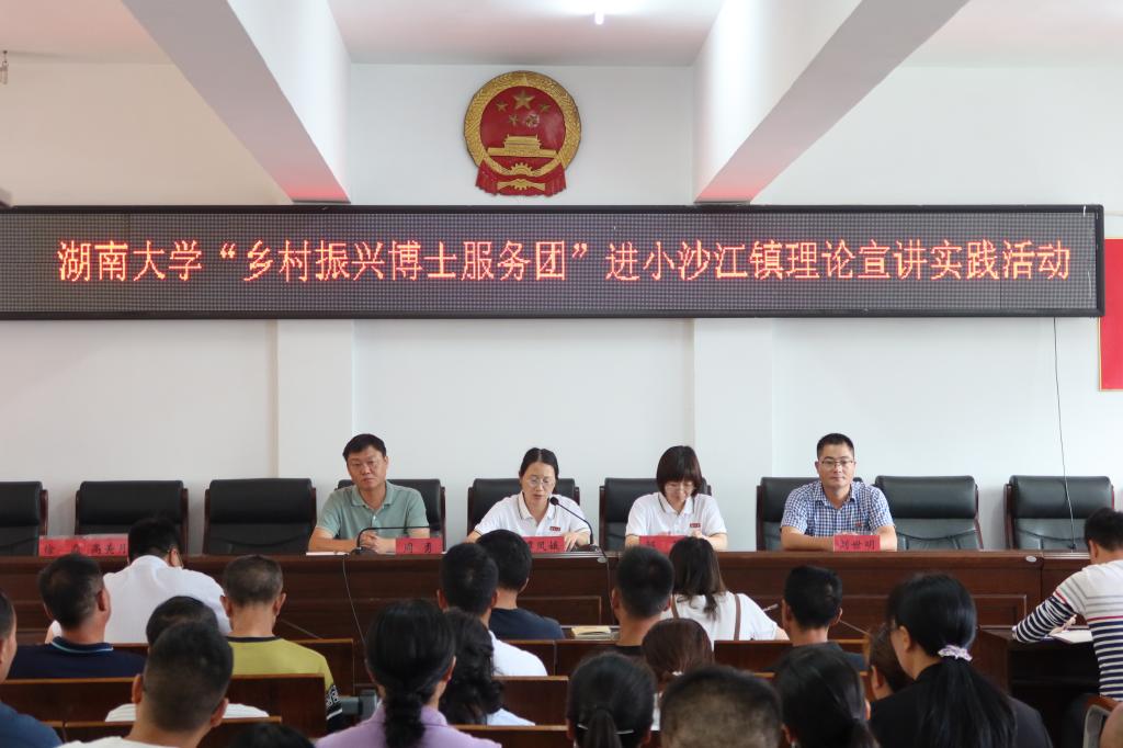 在邵阳市隆回县,青年讲师在小沙江镇礼堂为100余名镇、村干部进行理论宣讲。活动由党委研究生工作部副部长谭凤娥带队,定点帮扶办主任刘世明和马克思主义学院党委副书记邹薇参加。谭凤娥老师作活动介绍时指出,“乡村振兴博士服务团”理论宣讲分队走进乡镇,走进农村,旨在以青年学生视角阐释党的理论、用青年学生话语宣传党的主张,讲好百年党史,传承红色基因,凝聚奋进力量,主动服务基层。
